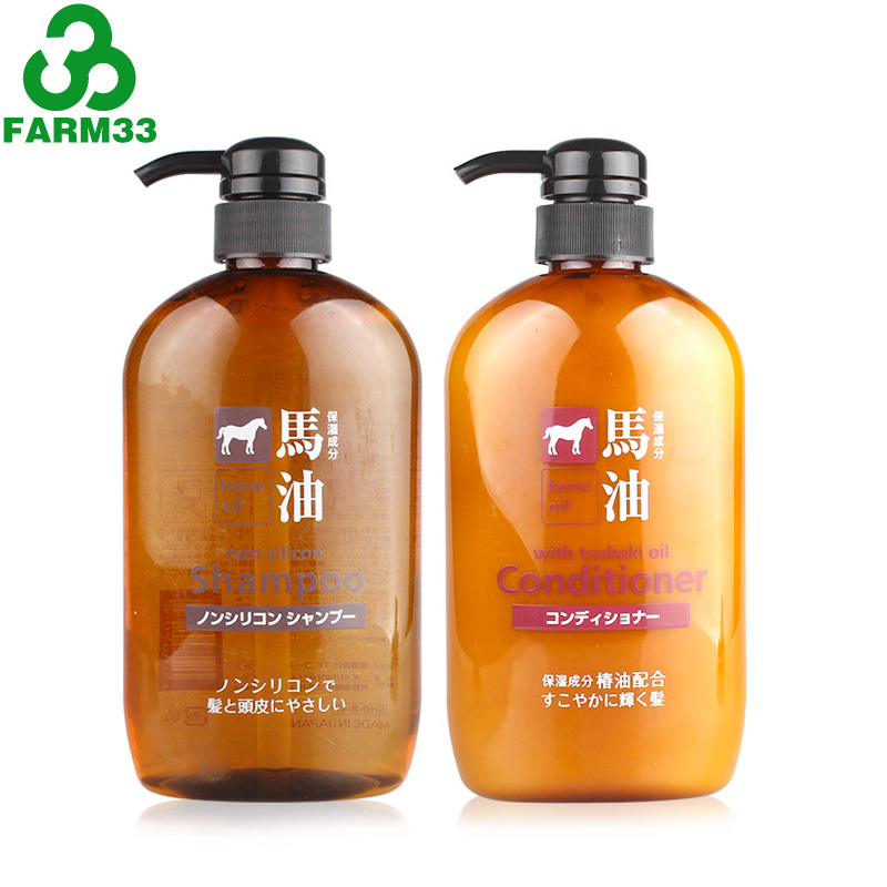 保税直发 日本熊野油脂horse oil 无硅油弱酸性马油洗护套装600ml