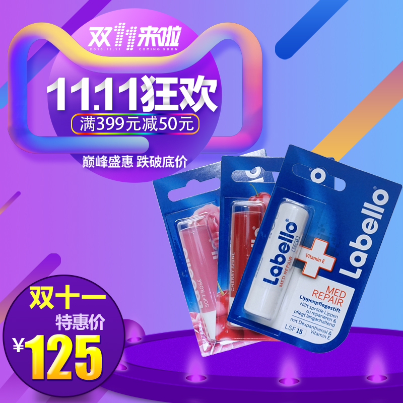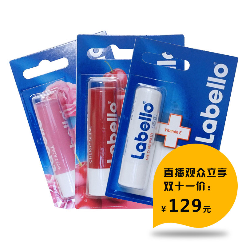 Labello拉贝罗 修复润唇膏樱桃提亮柔和玫瑰三种组合装4.8g*3