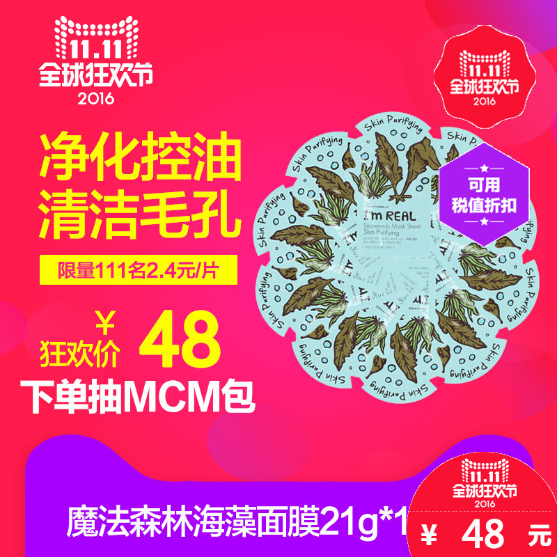 EMART海外 TONYMOLY 魔法森林I'm real真我海藻面膜21g*10片装