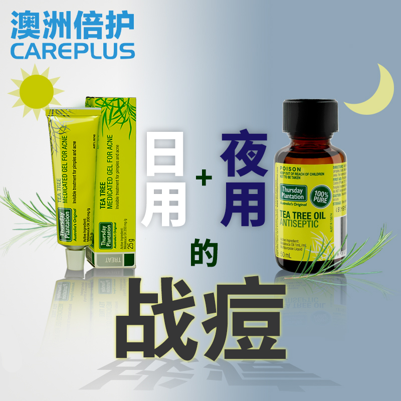 Thursday plantation战痘两部曲 茶树精油+茶树凝胶 日夜呵护