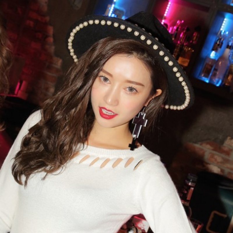 韩国stylenanda官方正品 时尚款珍珠装饰礼帽-黑色