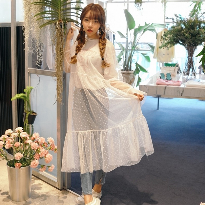 的热门产品韩国stylenanda官方正品 少女系波点元素透视连衣裙-象牙色