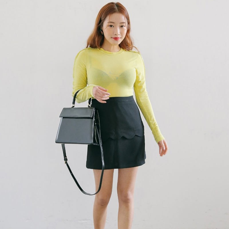 韩国stylenanda官方正品 层次感波浪边点缀迷你裙-黑色