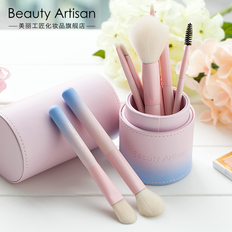 美丽工匠 韩国渐变色纤维毛8支化妆刷套装刷子全套收纳筒初学者