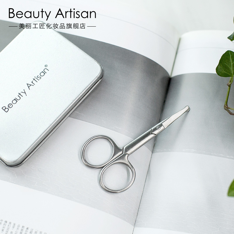 美丽工匠 便携修眉剪 圆头便携修剪眉毛鼻毛假睫毛进口不锈钢铁盒