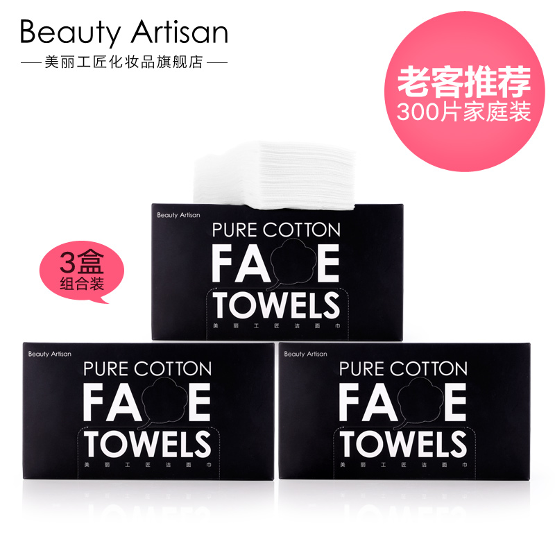 美丽工匠 纯棉一次性抽取式洁面巾洗脸巾3盒*100片旅行毛巾包邮