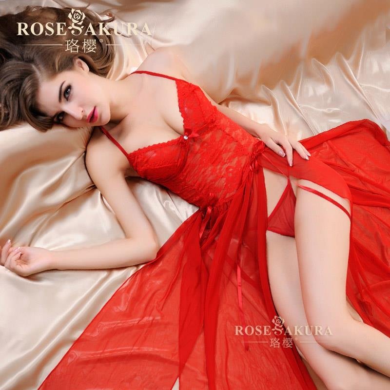 的热门产品珞樱高贵优雅红色性感高开衩长裙 透明低胸诱惑情趣内衣睡裙