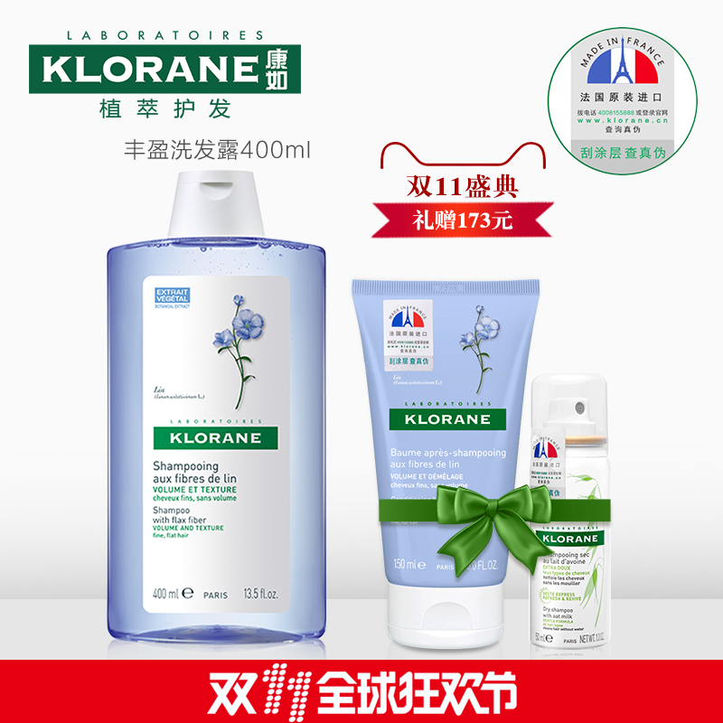 【双11】klorane康如丰盈洗发露 400ml修复发丝法国进口买一享二