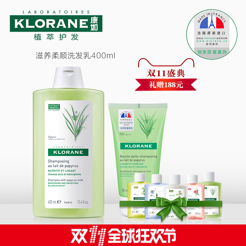 【双11】klorane康如油莎草滋养柔顺洗发露400ml法国进口买一享六