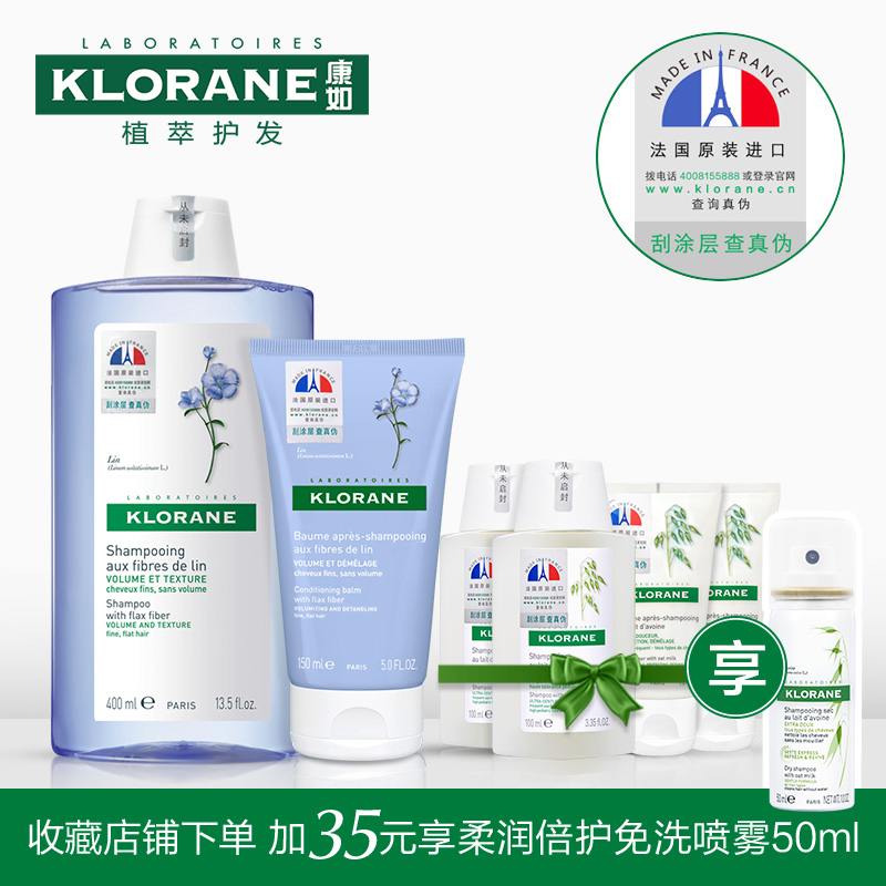 klorane康如亚麻丰盈洗发水400ml护发素150ml洗护套装强韧蓬松