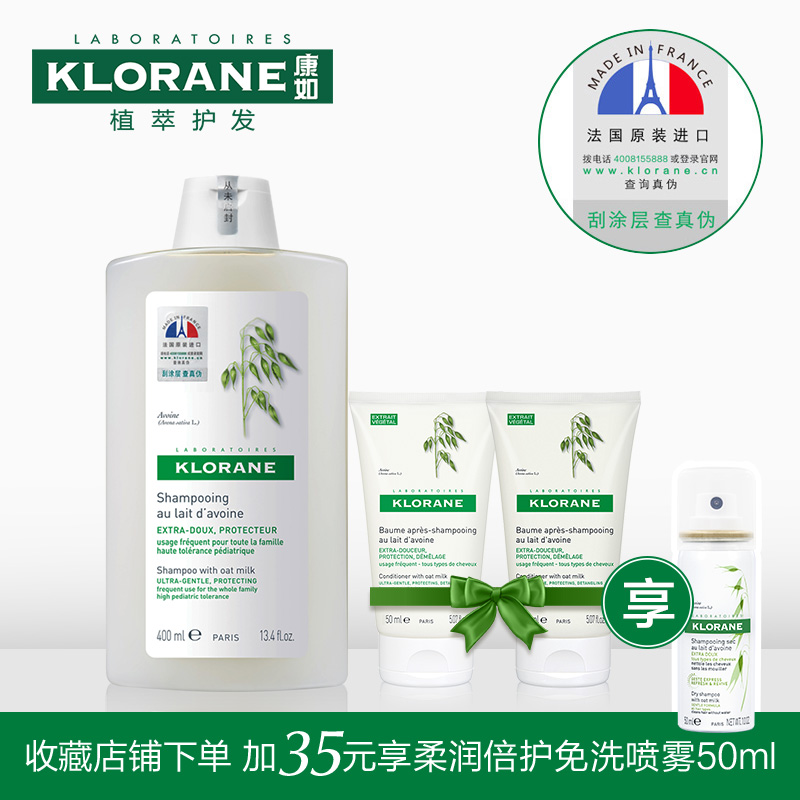 klorane法国康如柔润倍护洗发水400ml无硅油赠燕麦护发素正品
