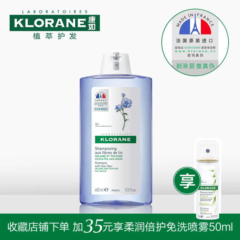 【预售】klorane康如亚麻丰盈洗发水400ml丰盈蓬松法国原装进口