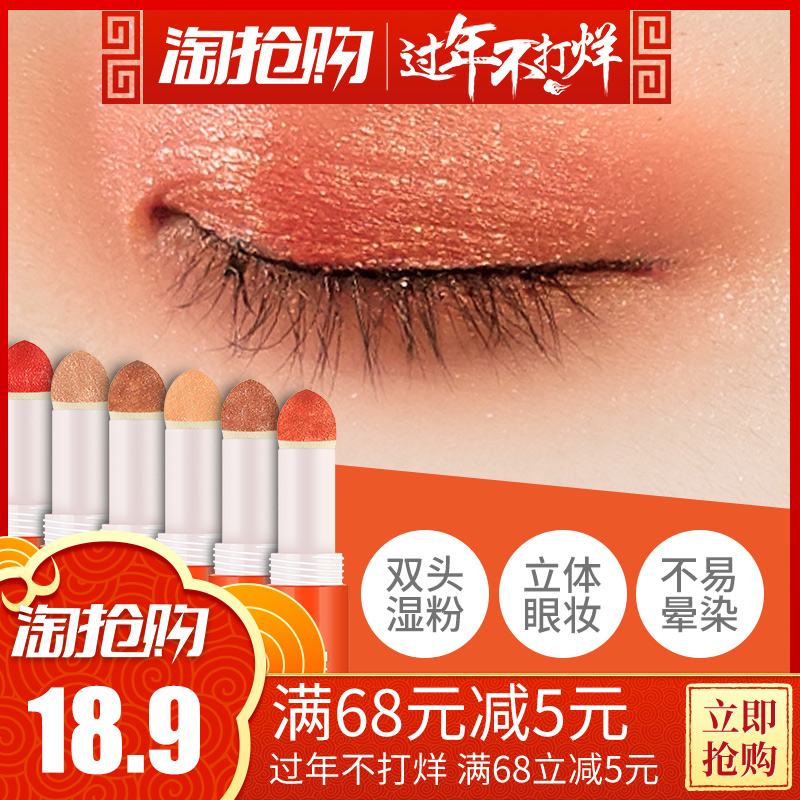 南瓜西柚色双头气垫珠光眼影棒酒红色高光卧蚕笔持久防水不易晕染