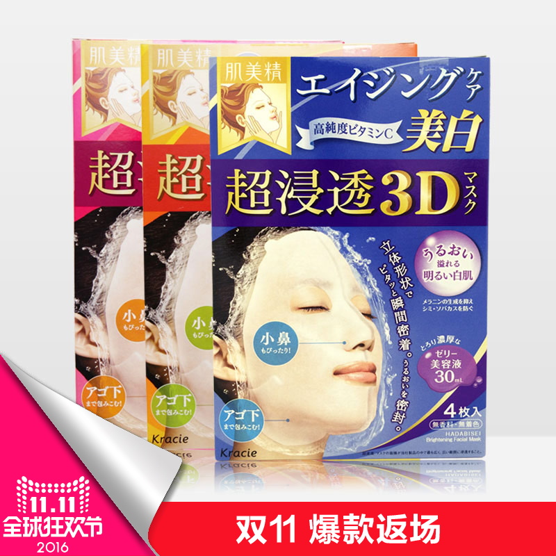 Kracie保税包邮 日本嘉娜宝肌美精立体3D超美白面膜4片 蓝+红+黄