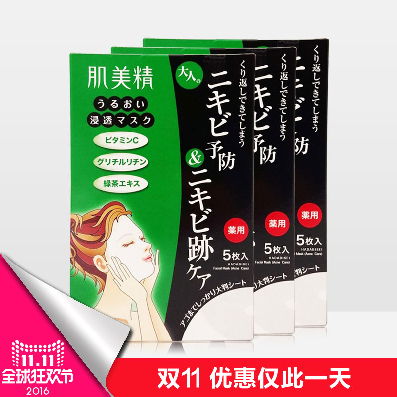 保税包邮 日本嘉娜宝kracie肌美精绿茶精华祛痘美白面膜5片*3盒