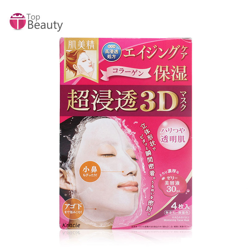 日本 Kracie/嘉娜宝 肌美精 超渗透抗皱保湿美白3D面膜 粉 4枚