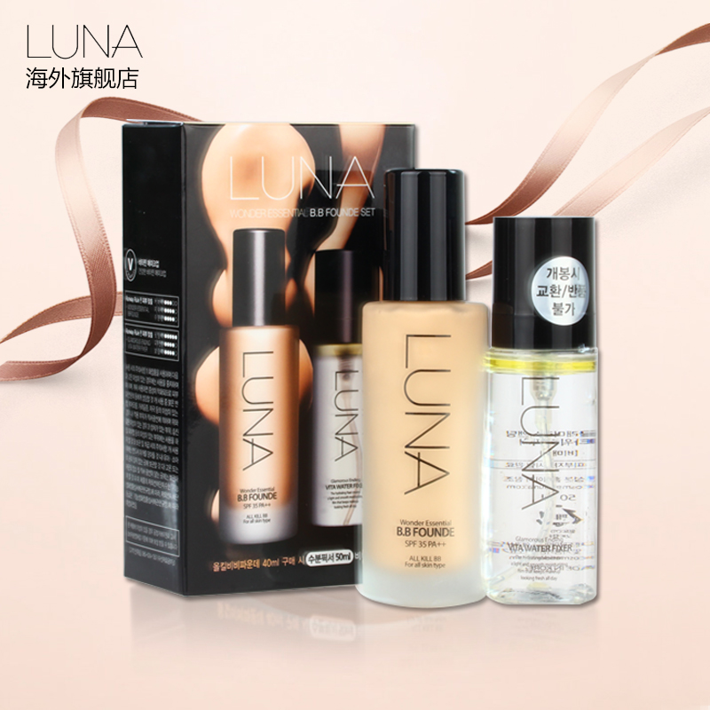 LUNA精华粉底套定妆喷雾 持久水润遮瑕保湿粉底液40ml+定妆水50ml