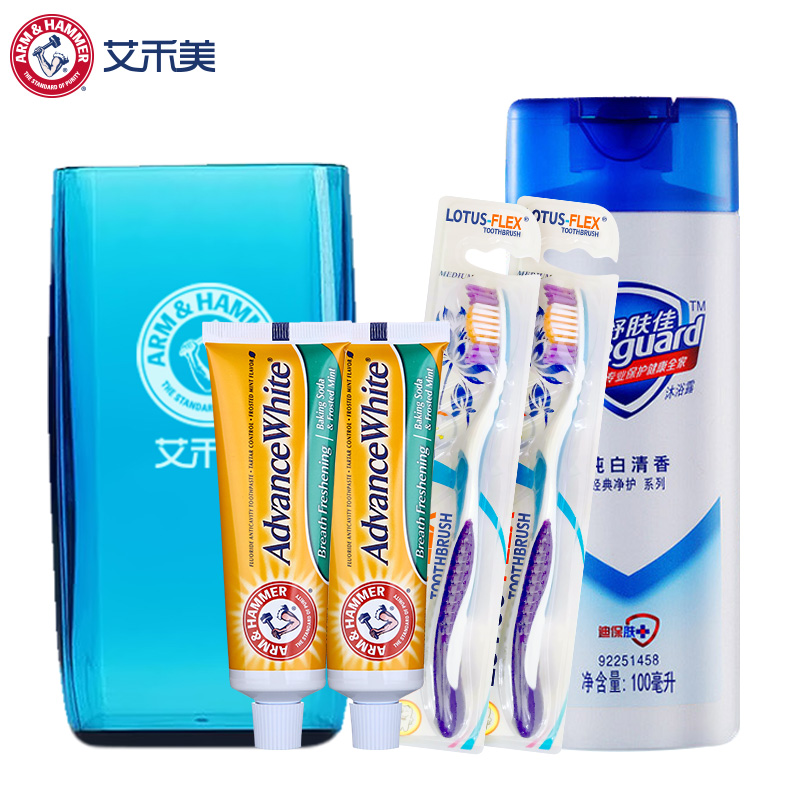 艾禾美口腔护理小苏打美白牙膏牙刷漱口杯沐浴露家用旅行6件套装