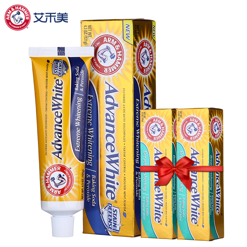 艾禾美美白牙齿牙膏进口去烟渍小苏打去清新口气美国成人护理套装