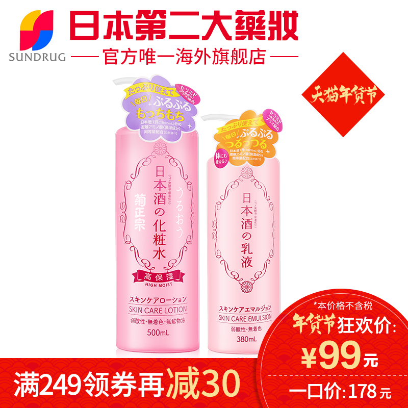 菊正宗日本清酒高保湿型爽肤水500ml/乳液380ml单瓶装 保湿补水