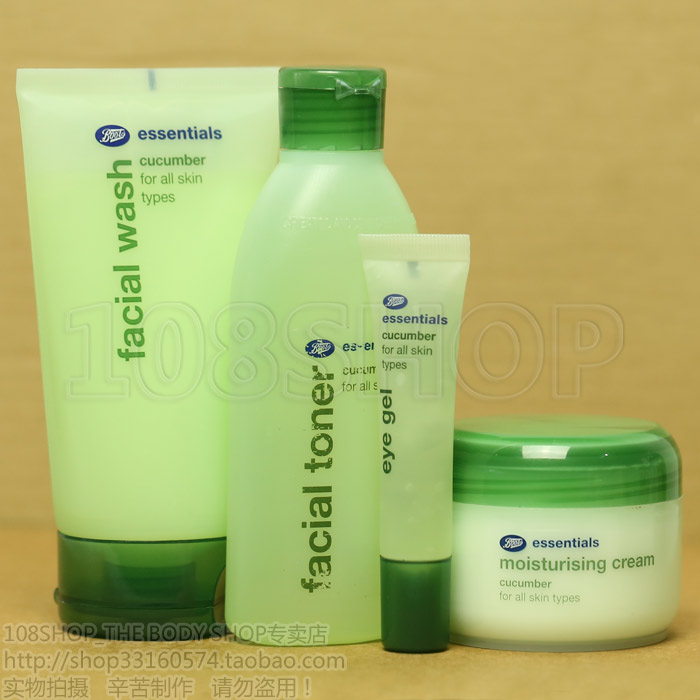英国BOOTS小黄瓜超补水美白面部护理4件套装洗面奶爽肤水眼霜面霜