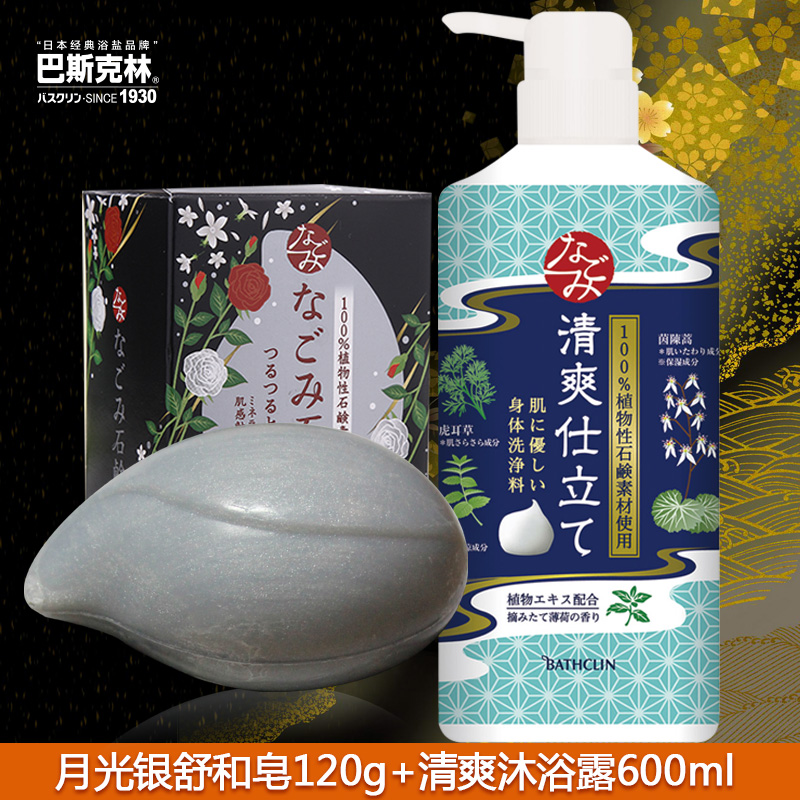 巴斯克林清爽沐浴露+月光银舒和皂套装日本进口洁面洗澡全身清洁