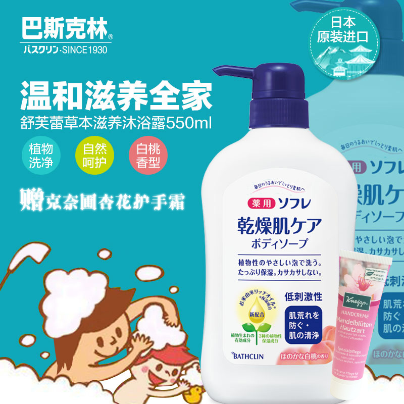 巴斯克林舒芙蕾沐浴露/白桃香550ml日本原装进口沐浴乳淋浴露包邮
