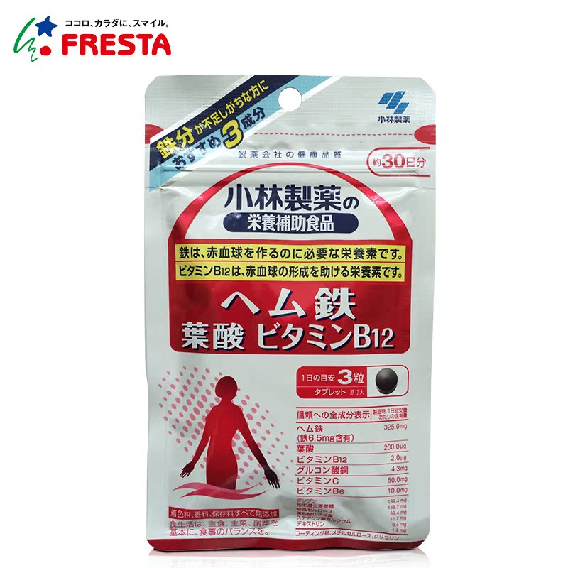 正品小林制药补铁血红素铁叶酸维生素B12浓缩健康日本直邮