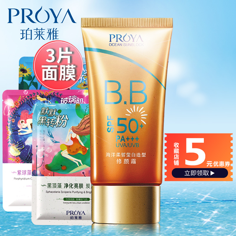 珀莱雅正品海洋柔皙莹白造型修颜霜防晒BB霜50倍高度隔离保湿遮瑕