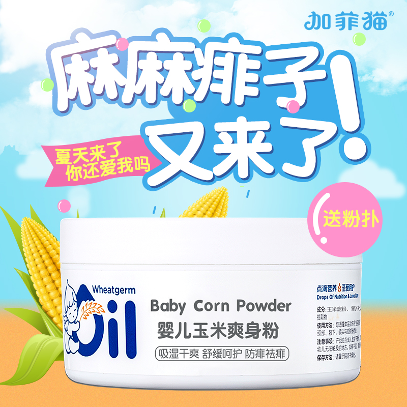 加菲猫 婴儿玉米热痱粉爽身粉痱子粉 袪痱止痒 120g 含粉扑