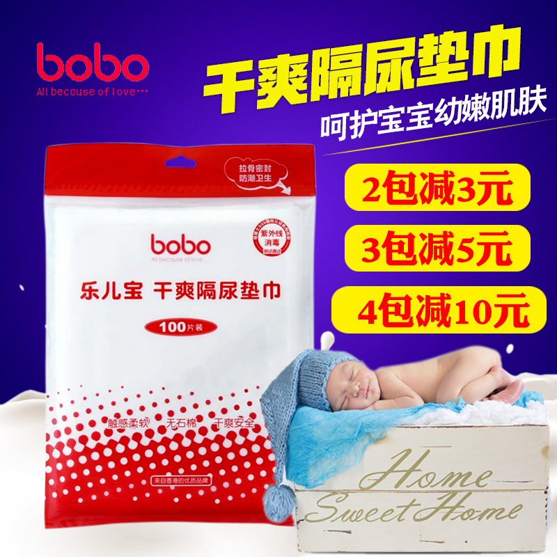 bobo乐儿宝隔尿垫巾100片一次性尿片新生婴儿宝宝无纺布尿布纸巾