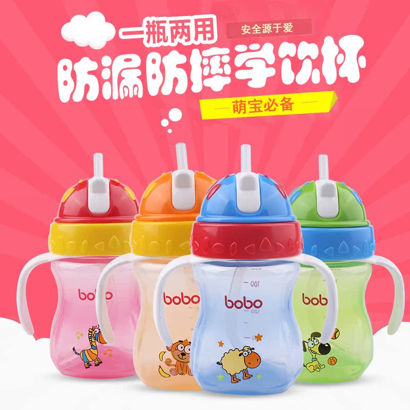 bobo乐儿宝婴儿吸管杯带手柄小孩喝水杯宝宝学饮杯防漏杯BB403