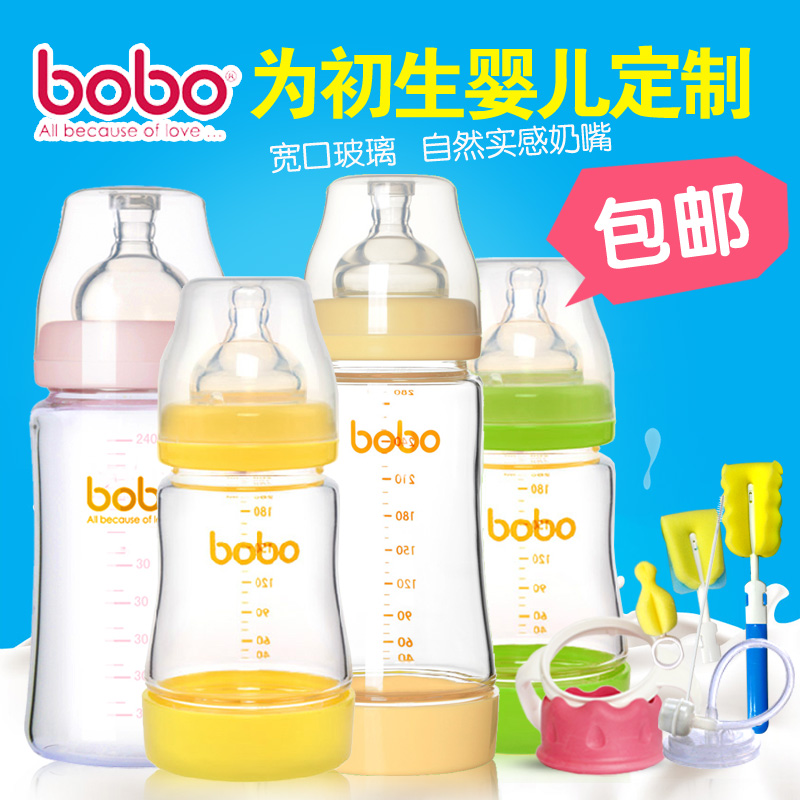 bobo乐儿宝宽口玻璃奶瓶新生婴儿宝宝奶瓶仿真母乳实感玻璃奶瓶