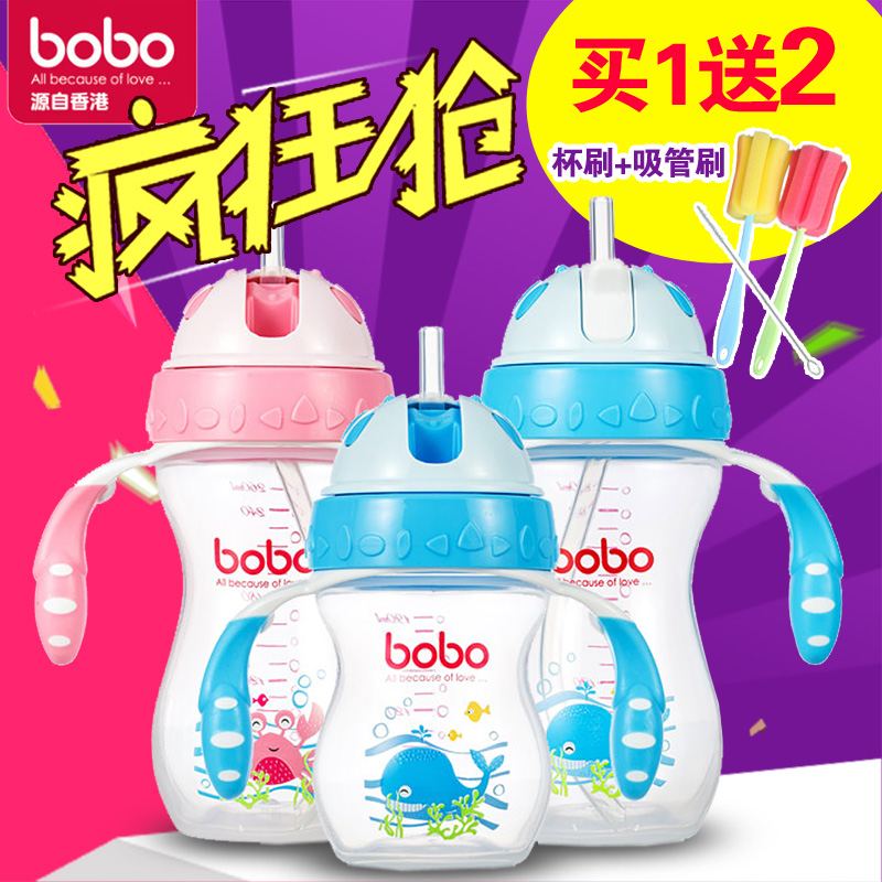 bobo乐儿宝儿童婴儿吸管杯带手柄防漏学饮杯宝宝小孩喝水杯BB309