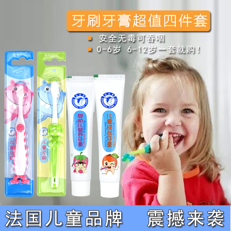 朵朵贝儿儿童牙刷牙膏套装食品级不含氟宝宝3-6-12岁四件超值牙具