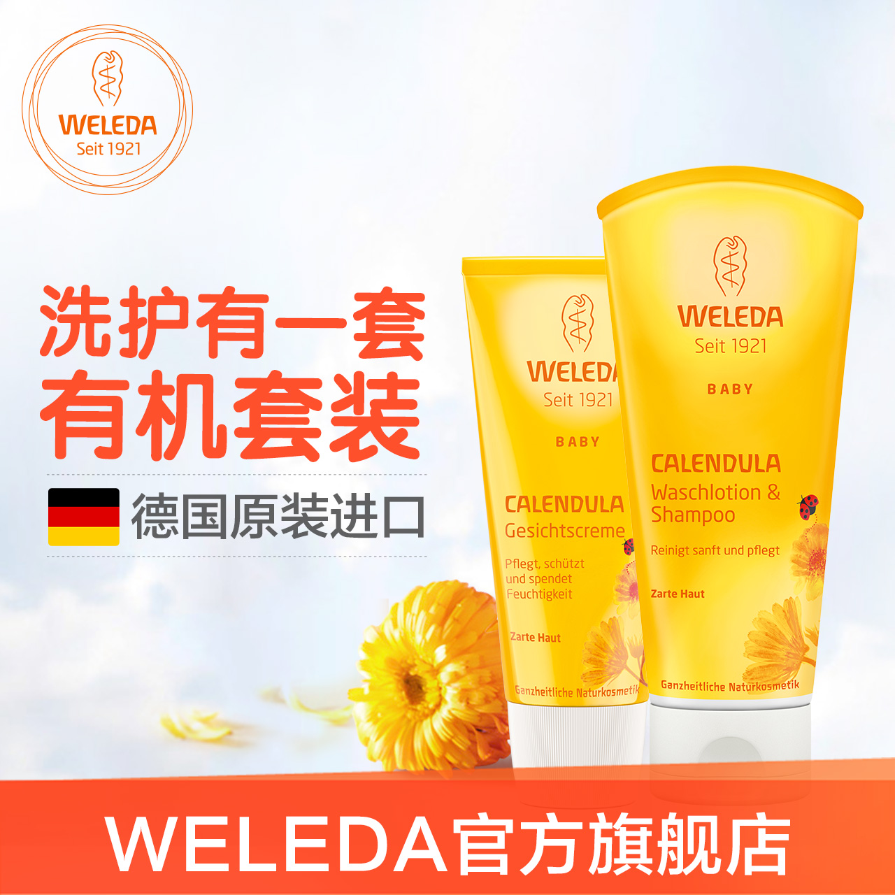 Weleda维蕾徳婴幼儿洗发沐浴露 保湿面霜套装 宝宝新生儿洗护无泪