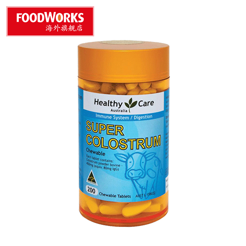 澳洲直达 Healthy Care 牛初乳咀嚼片 200片 新西兰加钙补钙奶片