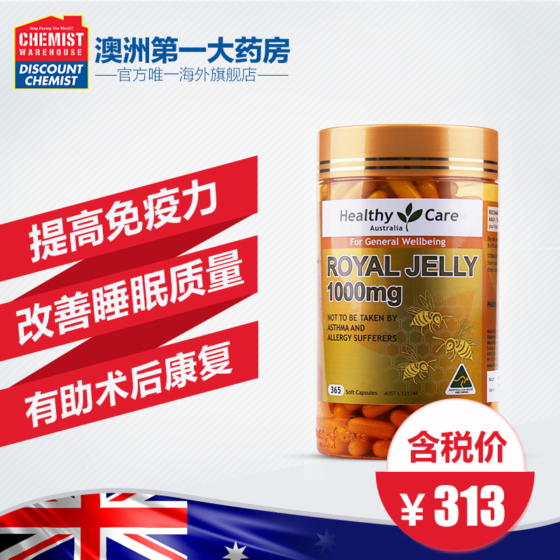 Healthy Care金装天然蜂王浆软胶囊 365粒澳洲进口