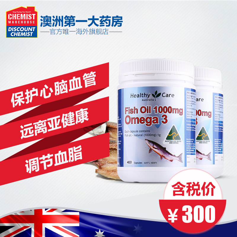 healthy care澳洲进口深海鱼油胶囊1000mg 400粒中老年调节三高