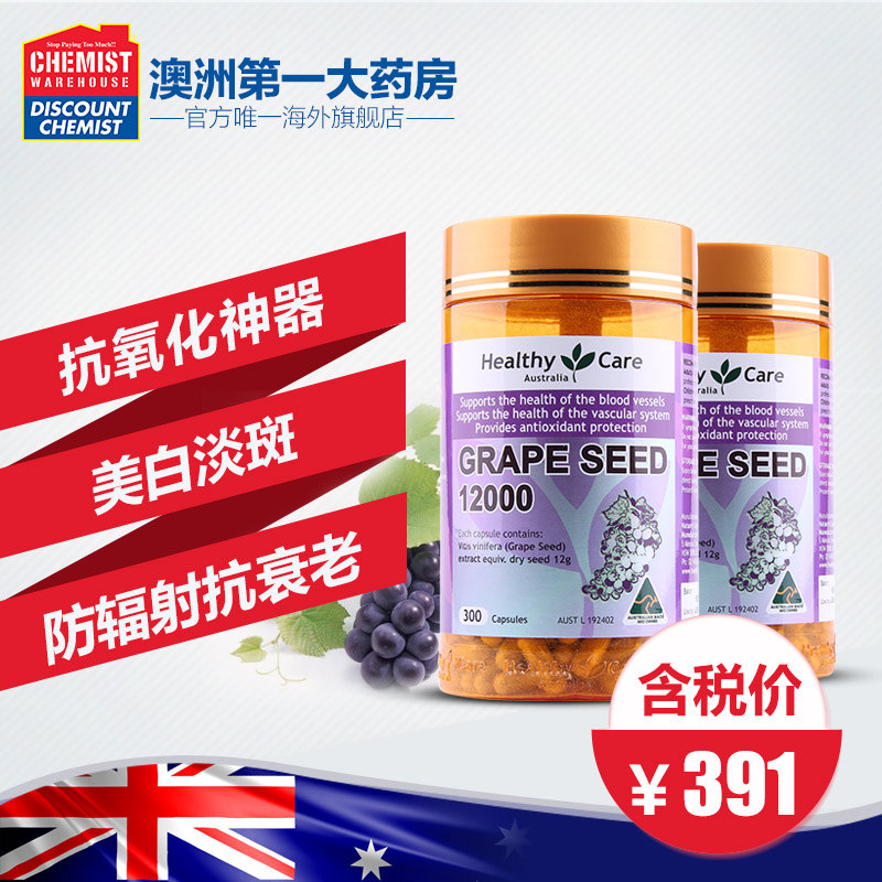 Healthy Care葡萄籽精华胶囊12000mg 300粒*2 美白淡斑澳洲进口