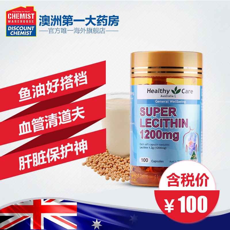 Healthy Care大豆卵磷脂胶囊100粒血管清道夫 降三高澳洲进口