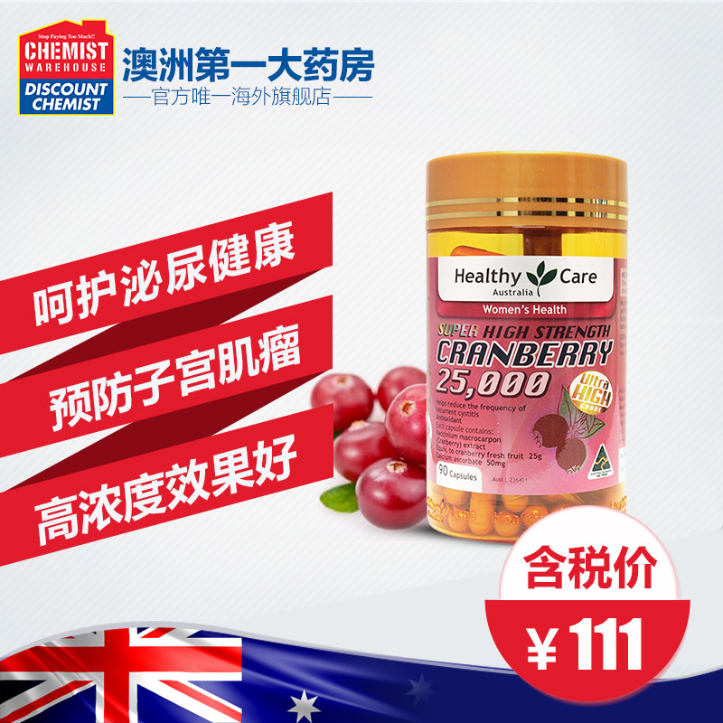 澳洲原装直邮Healthy Care高浓缩蔓越莓胶囊25000mg 90粒装