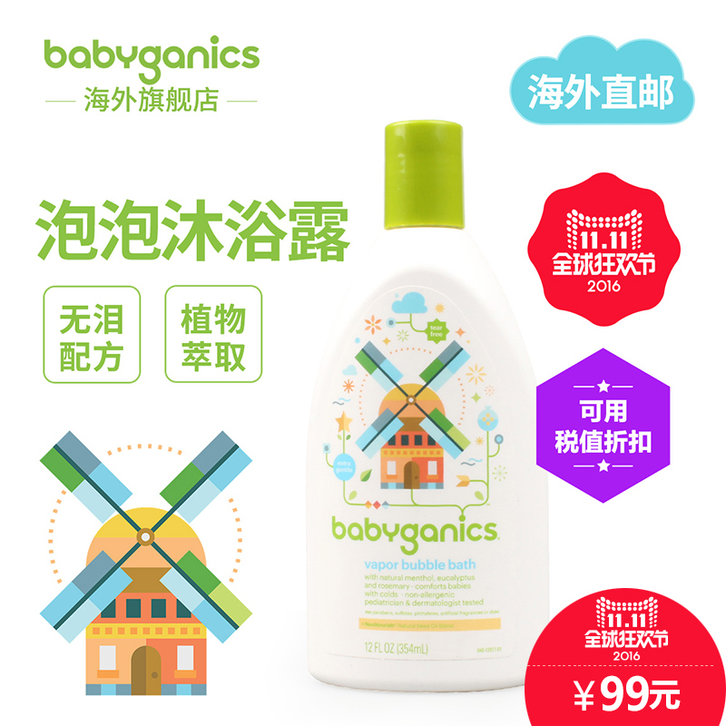 海外直邮babyganics甘尼克婴儿桉树泡泡浴儿童泡泡沐浴露354ml