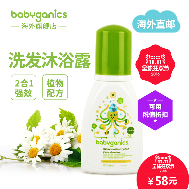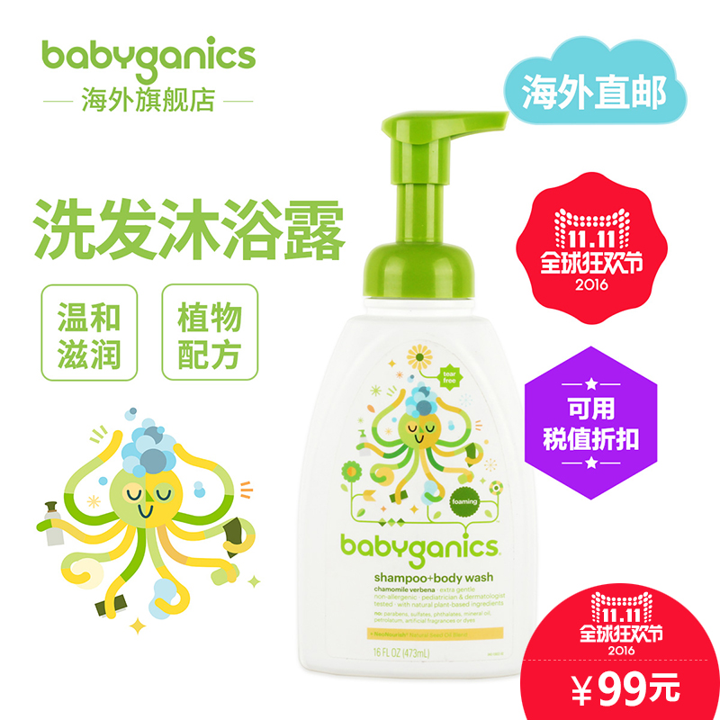 海外直邮babyganics甘尼克宝贝新生儿洗发沐浴露宝宝沐浴乳二合一