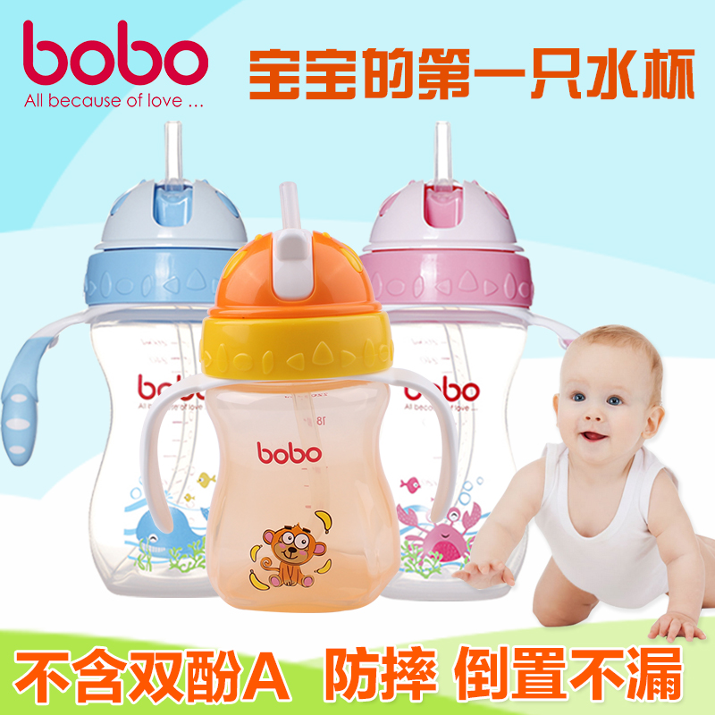 bobo乐儿宝婴儿吸管杯带手柄喝水杯宝宝学饮杯防漏杯小孩喝水杯