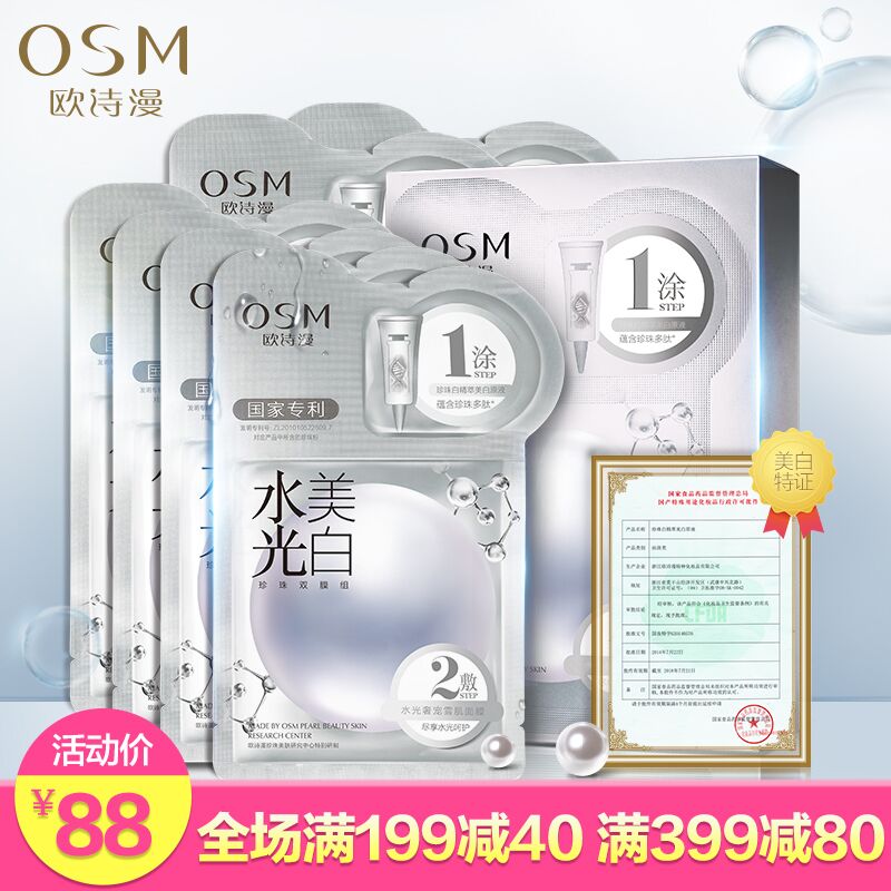 的热门产品OSM/欧诗漫美白淡斑面膜正品补水保湿深层清洁收缩毛孔珍珠粉男女
