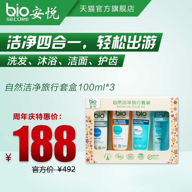 法国安悦 自然洁净旅行套装 洗发/沐浴/洁面 三合一
