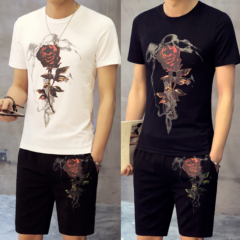 夏装运动休闲男装短袖韩版潮流T恤短裤套装一套夏天大码胖子衣服