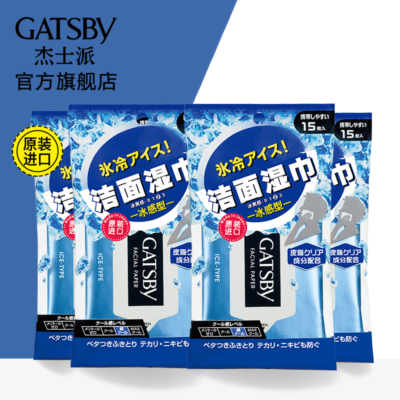 杰士派劲酷洁面湿纸巾冰感型15片×4套装 止汗控油冰冻湿巾男士