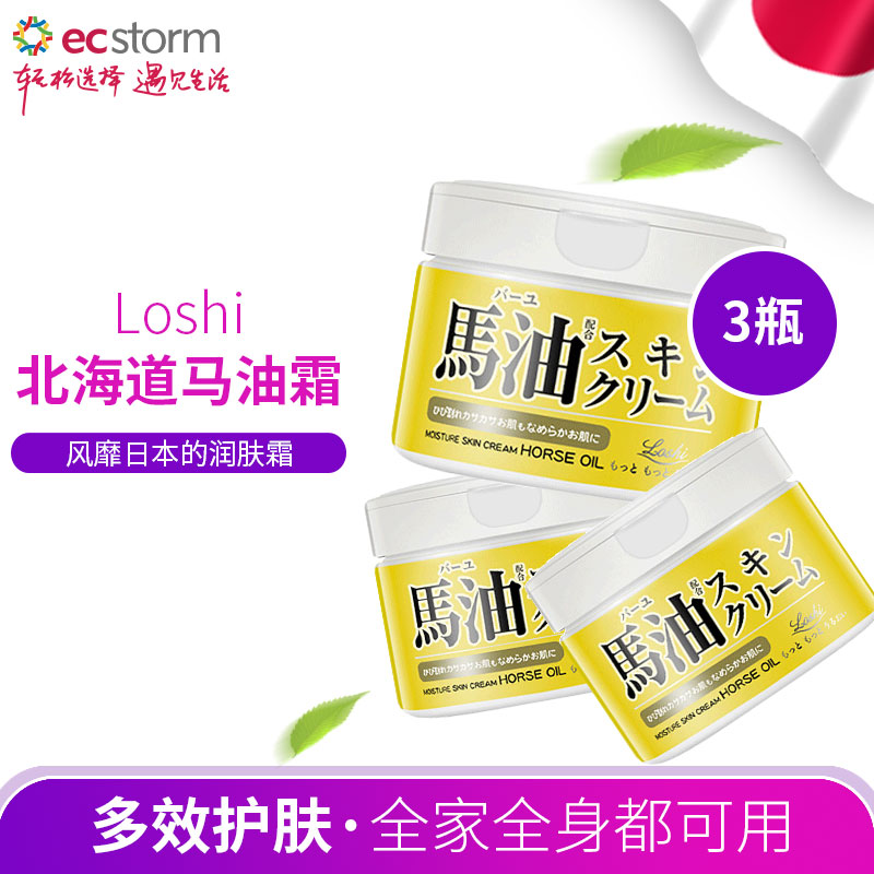 日本进口LOSHI北海道马油霜保湿滋润 天然补水抚平细纹220g*3瓶